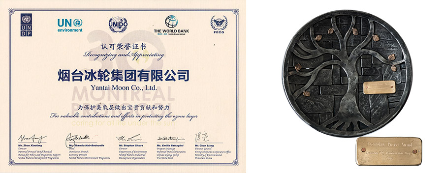 冰輪環(huán)境作為我國(guó)唯一企業(yè)榮獲聯(lián)合國(guó)“保護(hù)臭氧層示范項(xiàng)目獎(jiǎng)”。